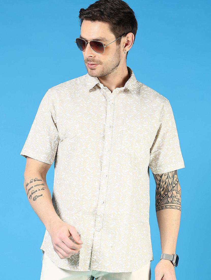 men printed short sleeve regular fit casual shirt