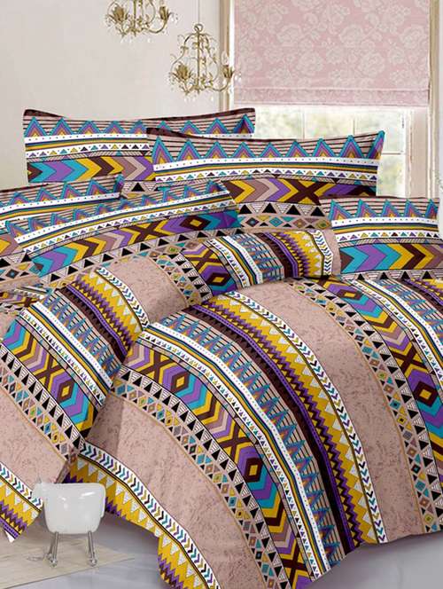 - » valtellina traditional beige cotton double bed sheet with 2 pillow cover - tc-250