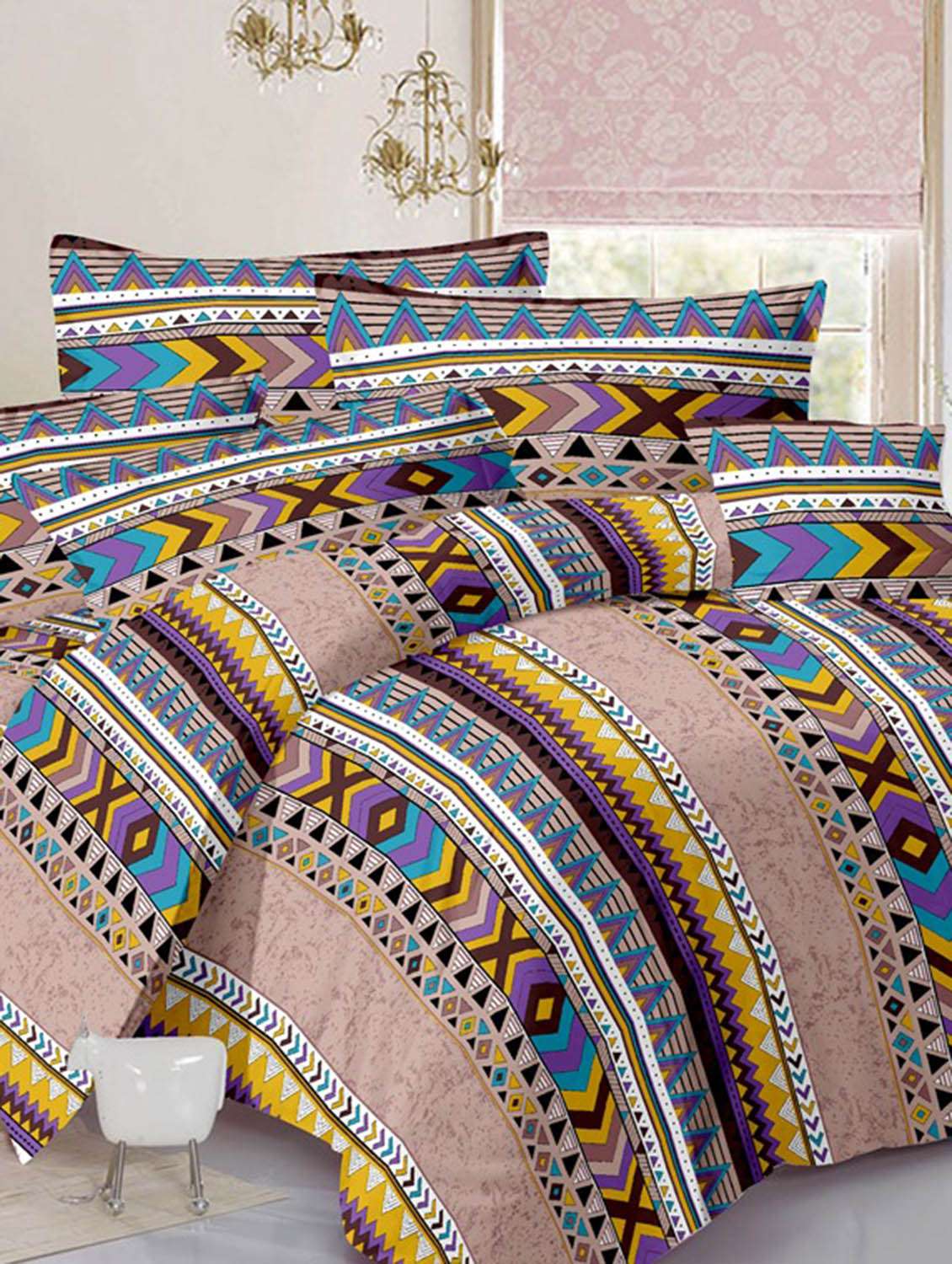 valtellina traditional beige cotton double bed sheet with 2 pillow cover - tc-250