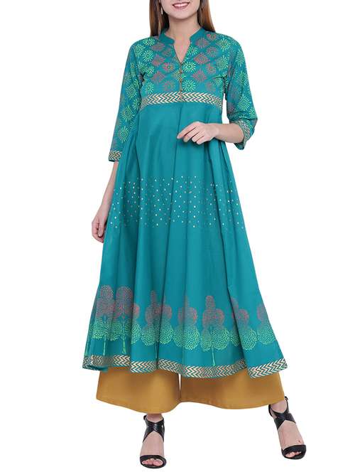 - » blue cotton flared kurta