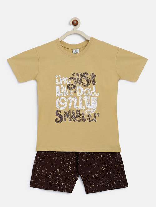 beige printed shorts set nightwear