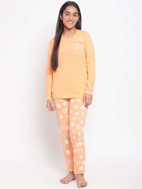girls round neck printed nightwear pyjama set - 18519516 - Very Small Image - 1