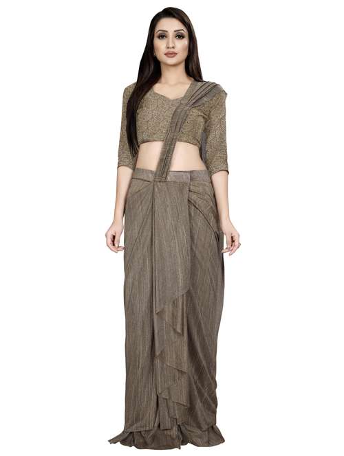 solid fusion draped saree with blouse - 16699932 - Very Small Image - 1