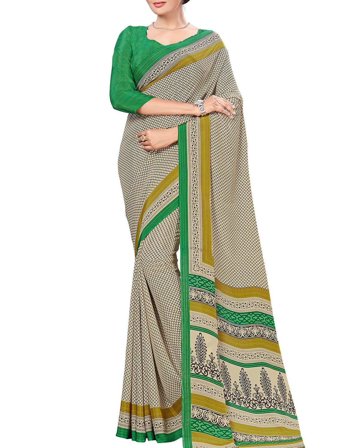 contrast bordered printed saree