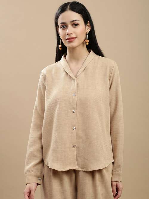 - Looking for some premium collection of shirts? Well, get ready to don attractive shirts from De Moza and find them in beige colours.