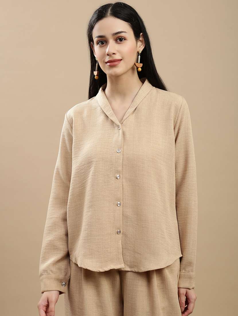 women solid long sleeve regular shirt