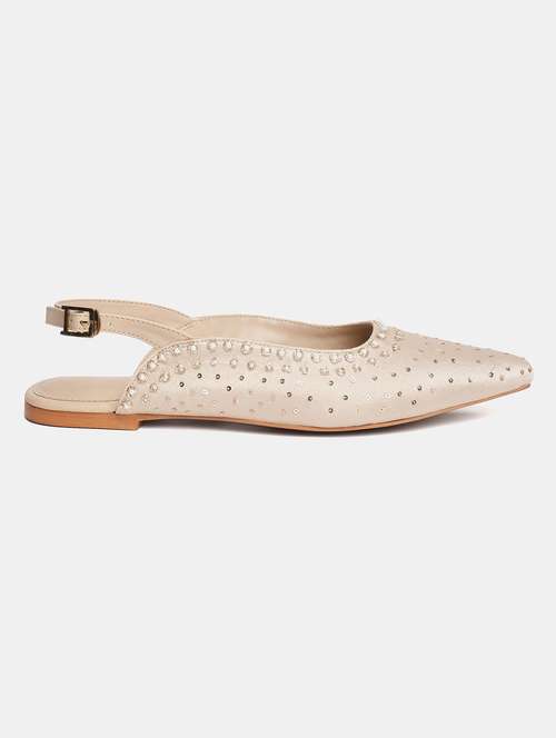 beige fabric slip on sandals