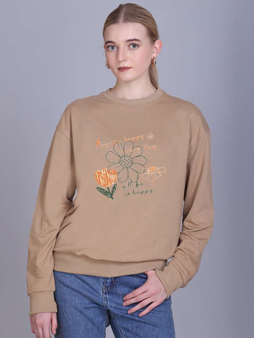 beige fleece plain sweatshirt
