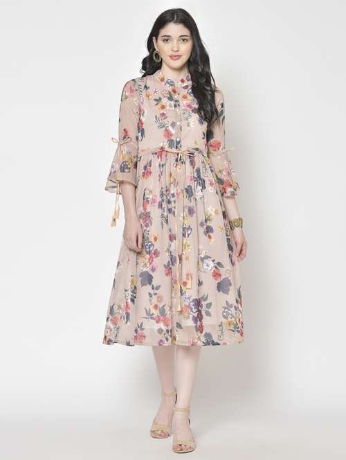- Dress up in a soothing pattern and don this dress made of georgette material.