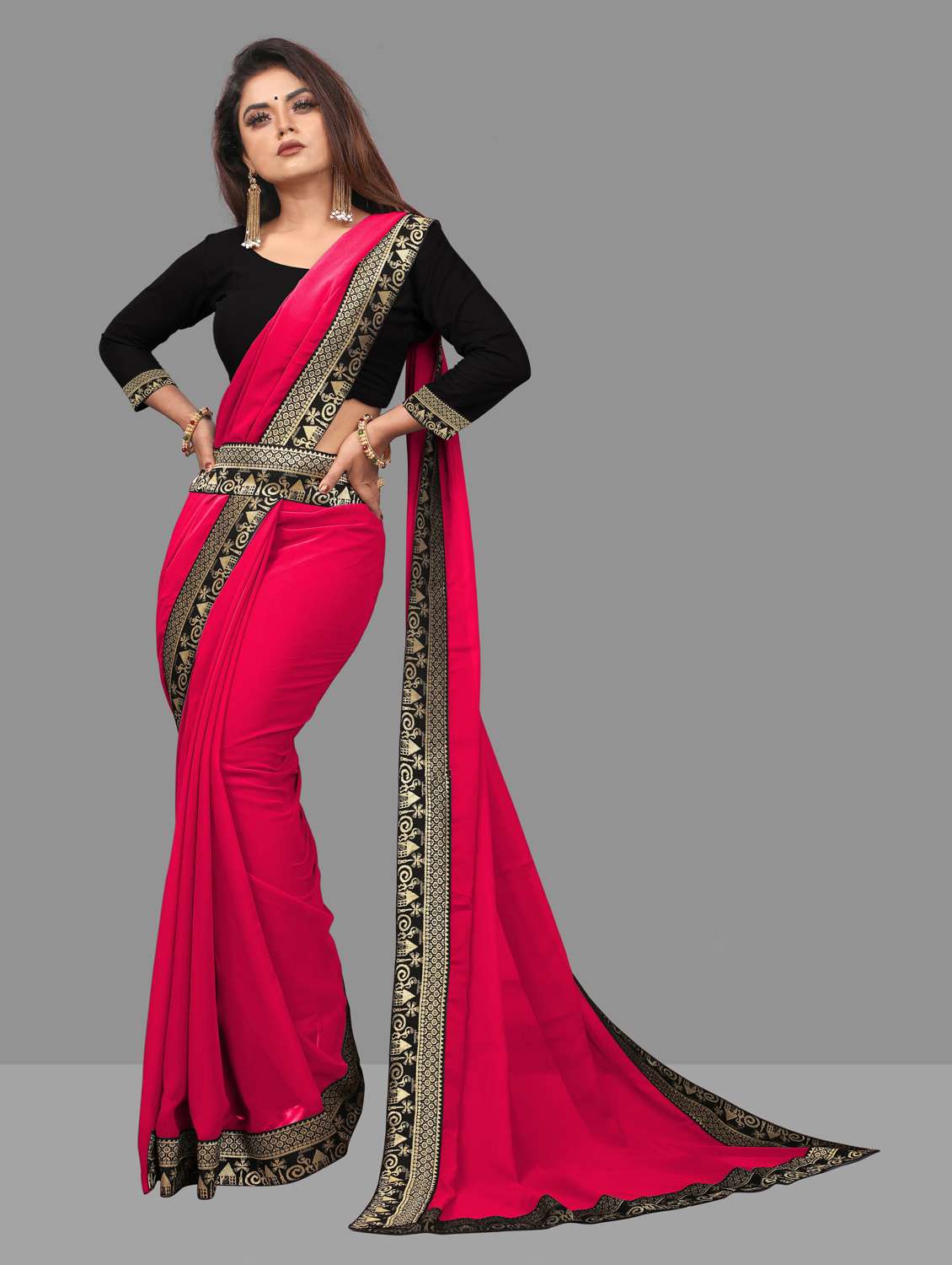 - » women's bordered pink colored saree with blouse