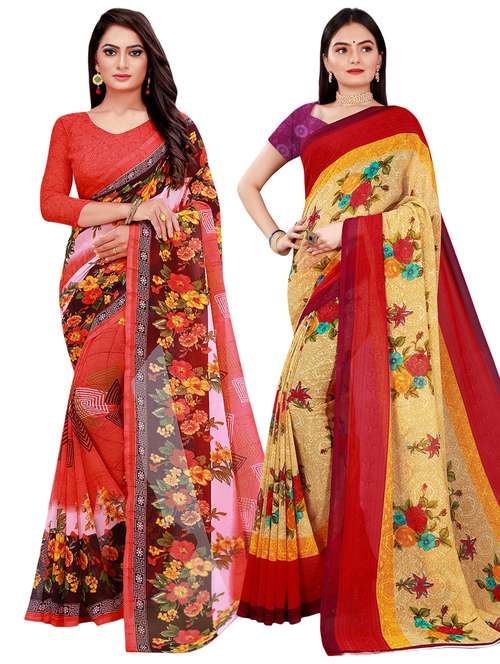 pack of 2 printed casual wear sarees with blouse - 21396386 - Very Small Image - 1