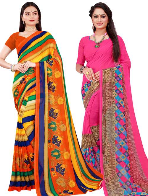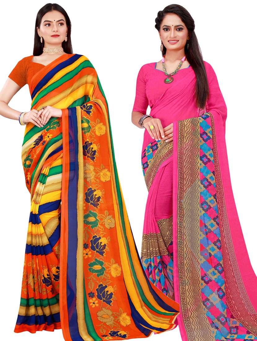 women pack of 2 casual wear combo sarees with blouse