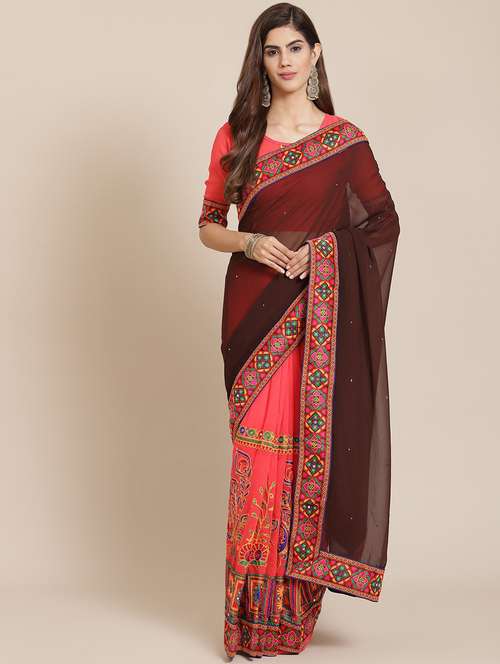 Saree Fabric : Georgette , Blouse Fabric : Georgette Features: Designer Georgette Embroidery Work Saree Type : Designer Embroidery Georgette Half & Half Saree Pattern : Flower Pattern Embroidery Work Saree Transparency : Good Fabric Saree Dimension : Saree Length - 5.5 MTR , Blouse Length - 0.8 MTR Pack of : 1 Saree : 1 Blouse This Embroidered Saree Concept Has been Made By Serona Fabrics Designer For Wedding Engagement Or Any Occasion Which Will Add Glamour To Your Beauty