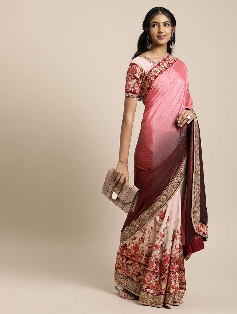 half & half embroidered saree with blouse