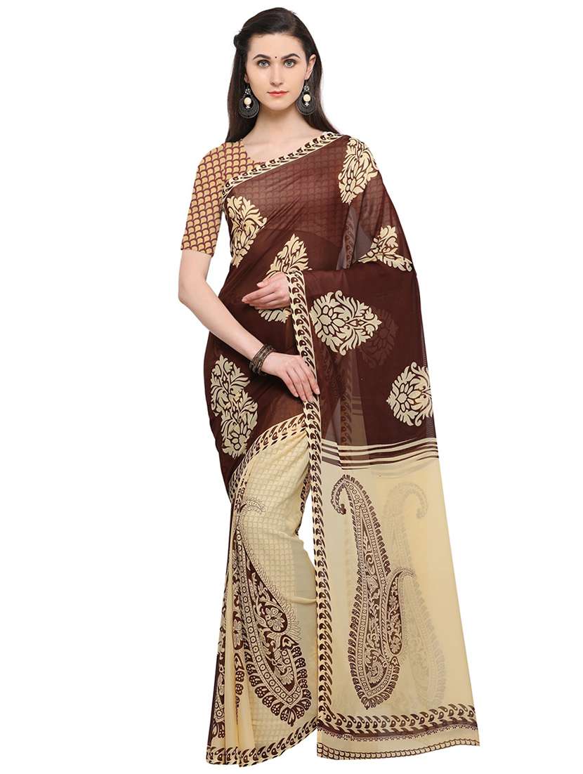 brown printed saree with blouse - 17661546 -  Standard Image - 0 brown printed saree with blouse - 17661546 -  Zoom Image - 0