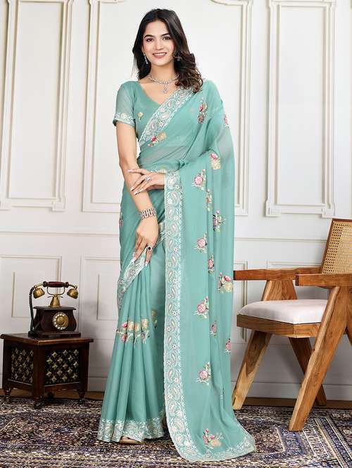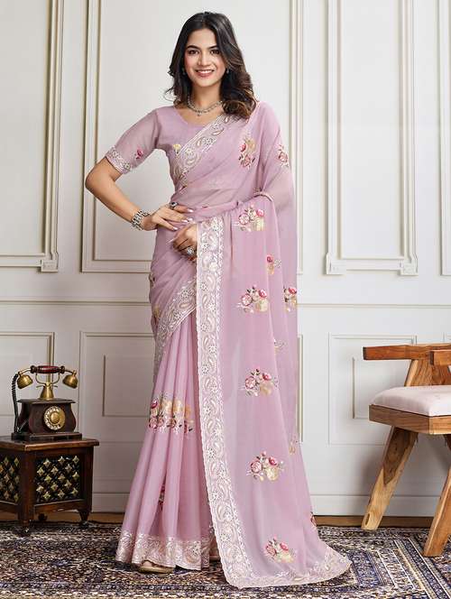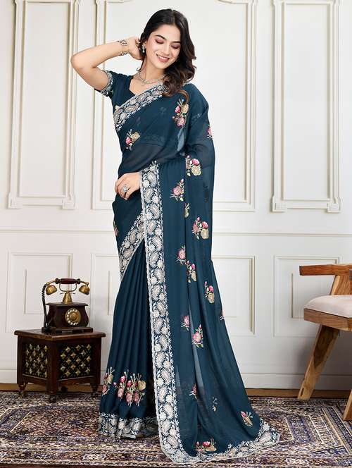 Vairagee Star Georgette Silk Embroidery Saree & Star Georgette Silk Blouse