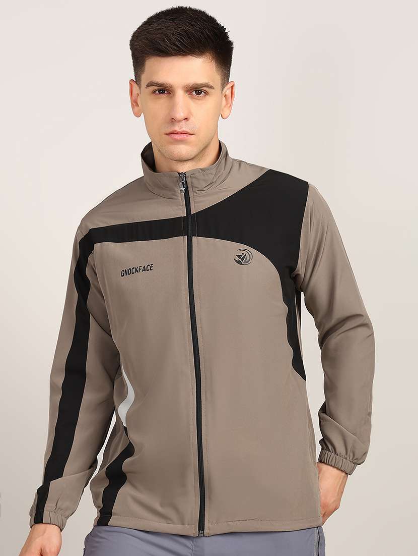men long sleeved color block casual jacket