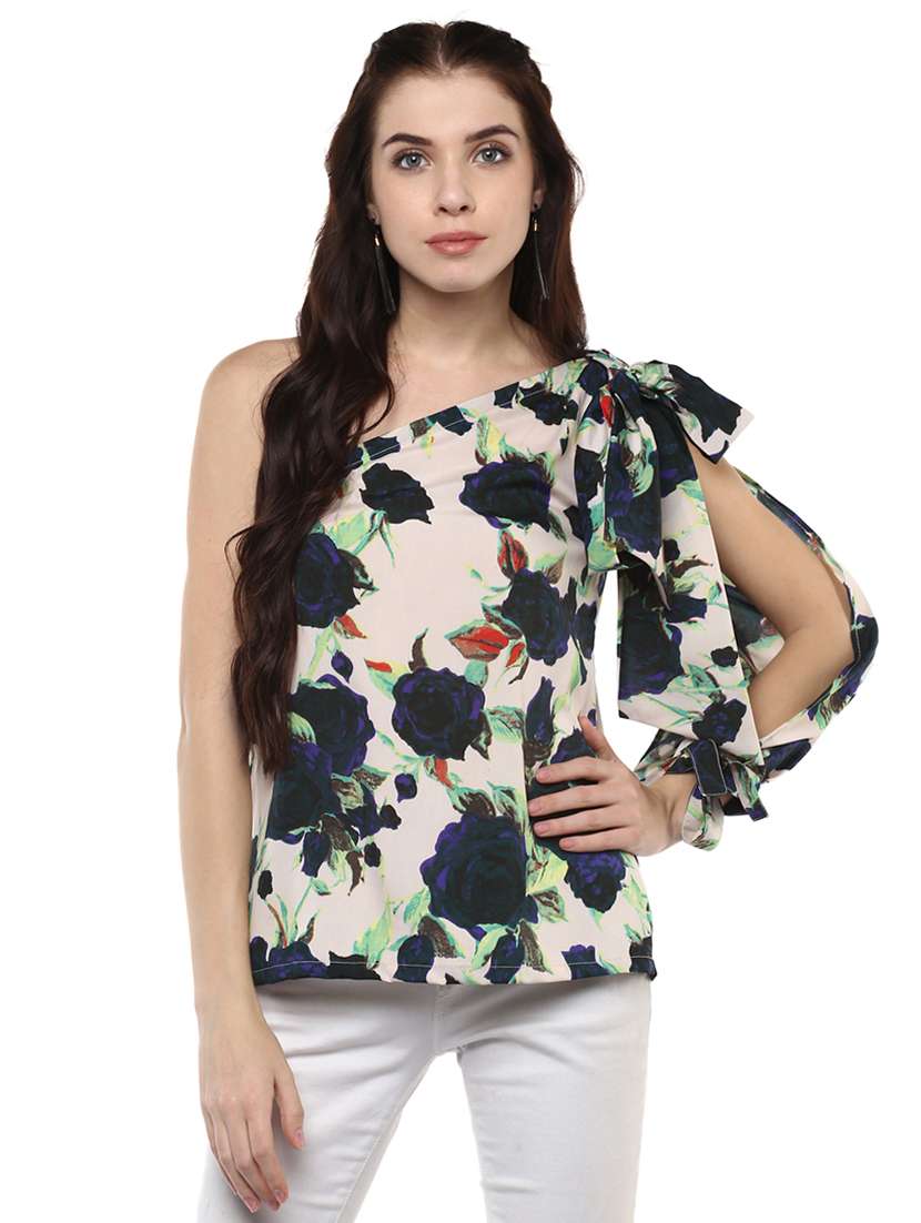 - » single shoulder tie-knot slit sleeved top