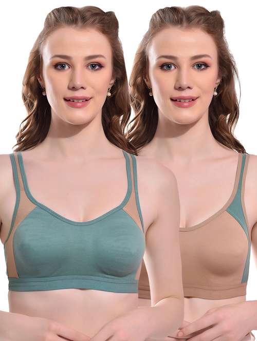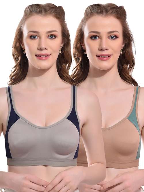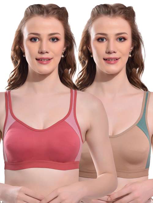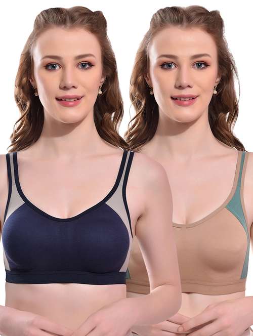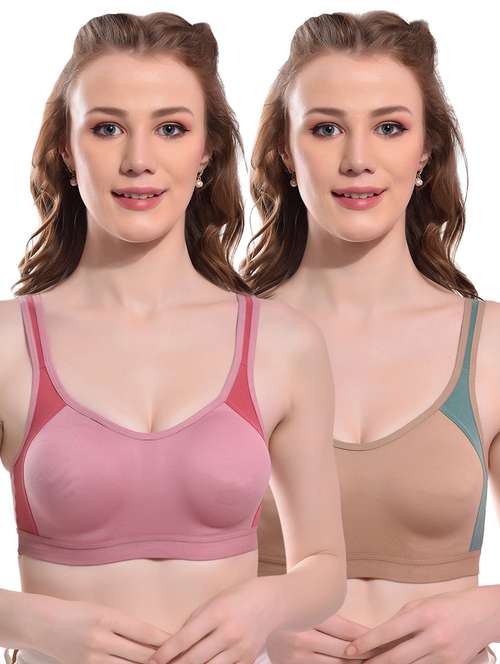 A color block stylish sports look moulded cup full coverage non-padded bra is a trendy and functional bra designed to provide support and comfort for women during their workouts or any physical activity. The bra features a stylish color-blocked design that adds a touch of fashion to your workout wardrobe.