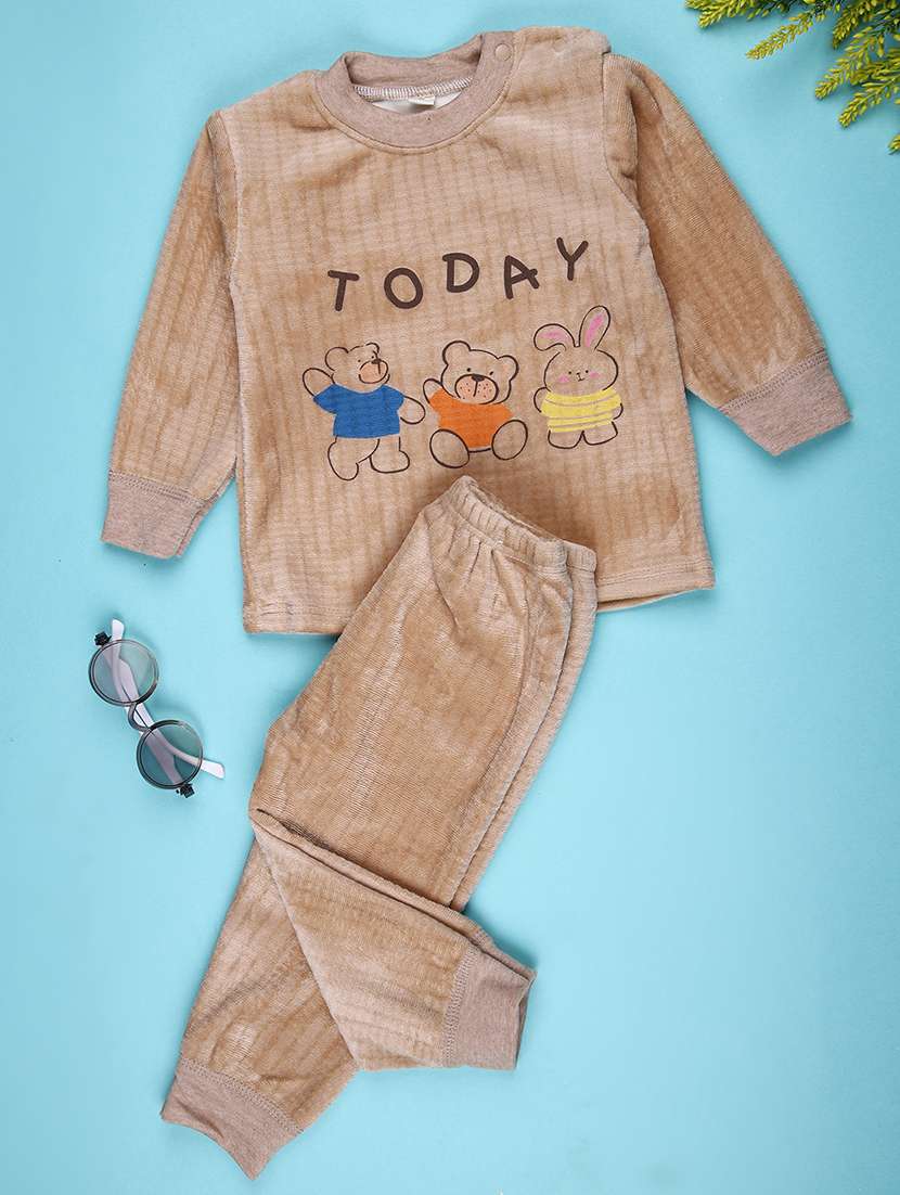 boys printed long sleeve winterwear full length sets