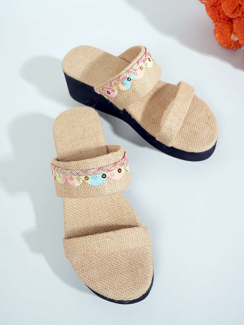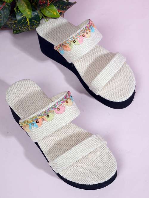 - » beige embellished platforms wedge
