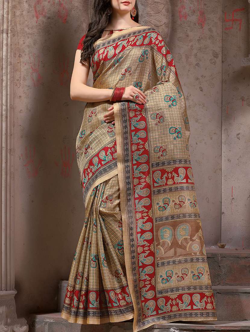 - » contrast border madhubani printed saree with blouse