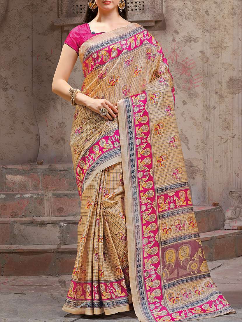 - » conversational printed beige saree with blouse