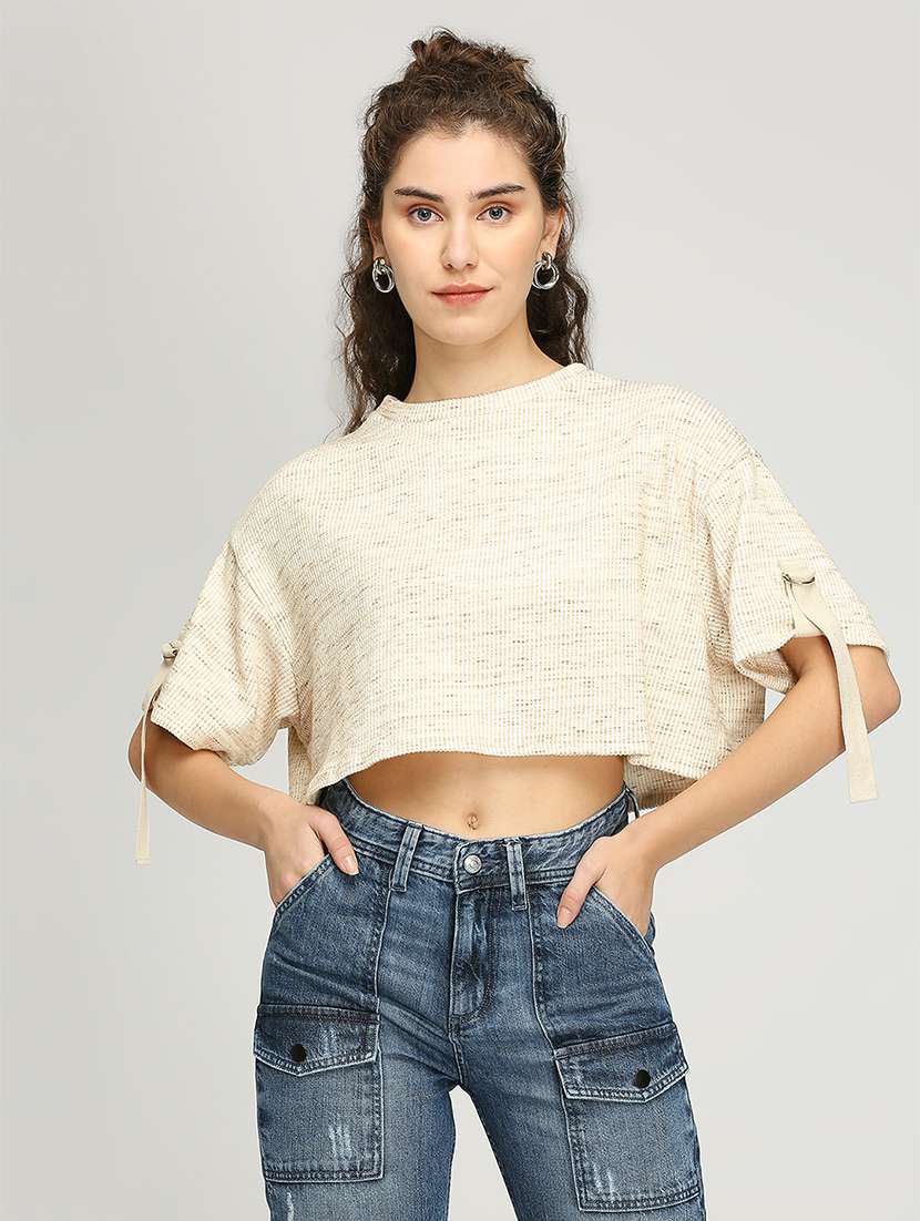 - » women solid round neck crop boxy t-shirt