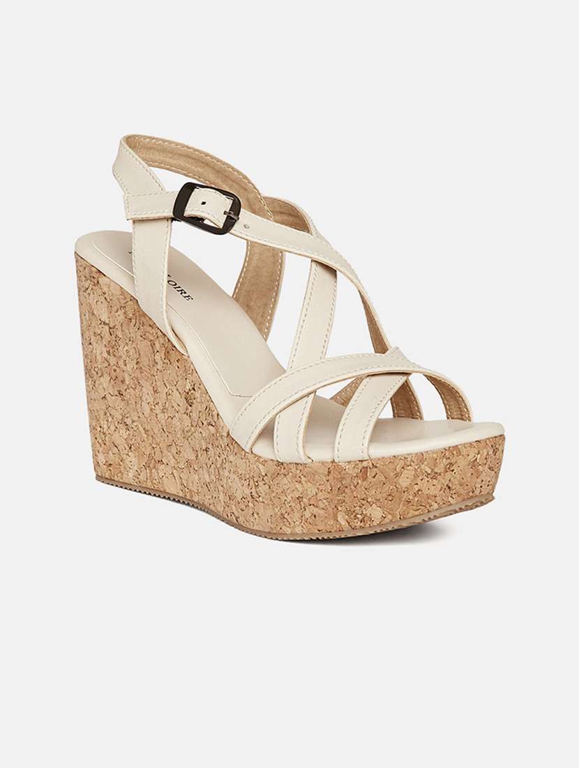 women beige ankle strap wedge