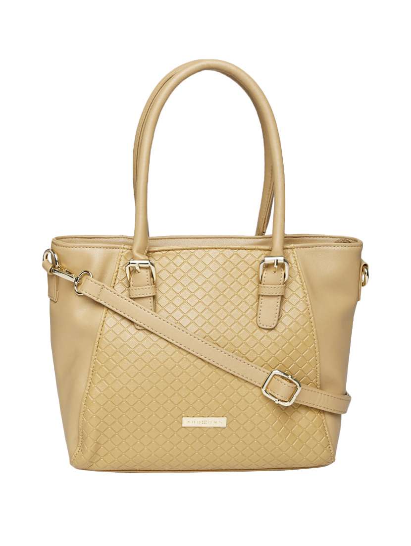 Diagonal texture in the centre ups the design element of bag with gold hardware & adjustable strap. The spacious bag is ideal for casual & formal look.