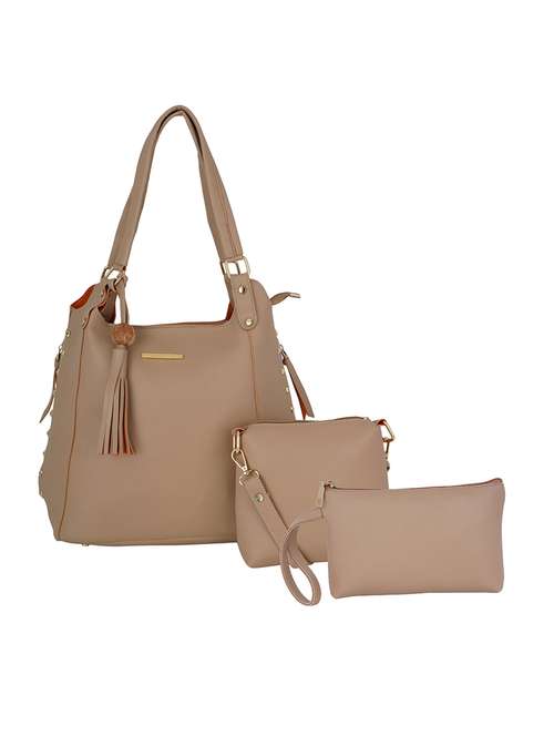 beige leatherette (pu) combo handbag