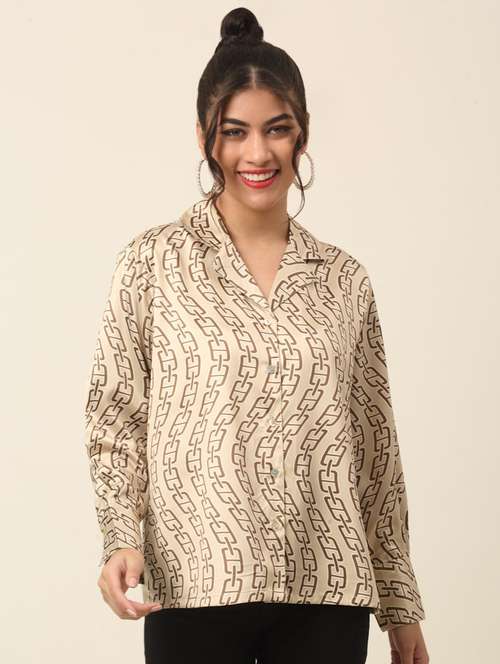 beige printed regular fit lapel neck shirt - 20120619 - Very Small Image - 1
