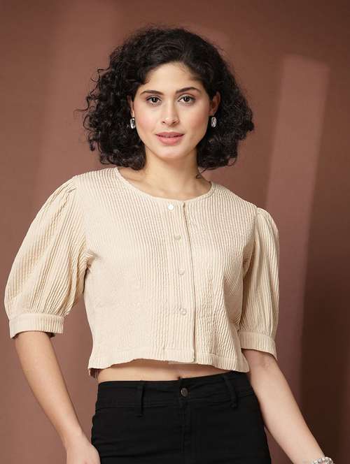 - » women beige solid crop shirt