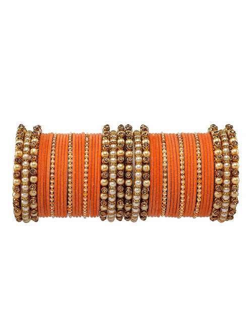 - » rijoli pearl and crystal stone metal bangle set (pack of 50 )