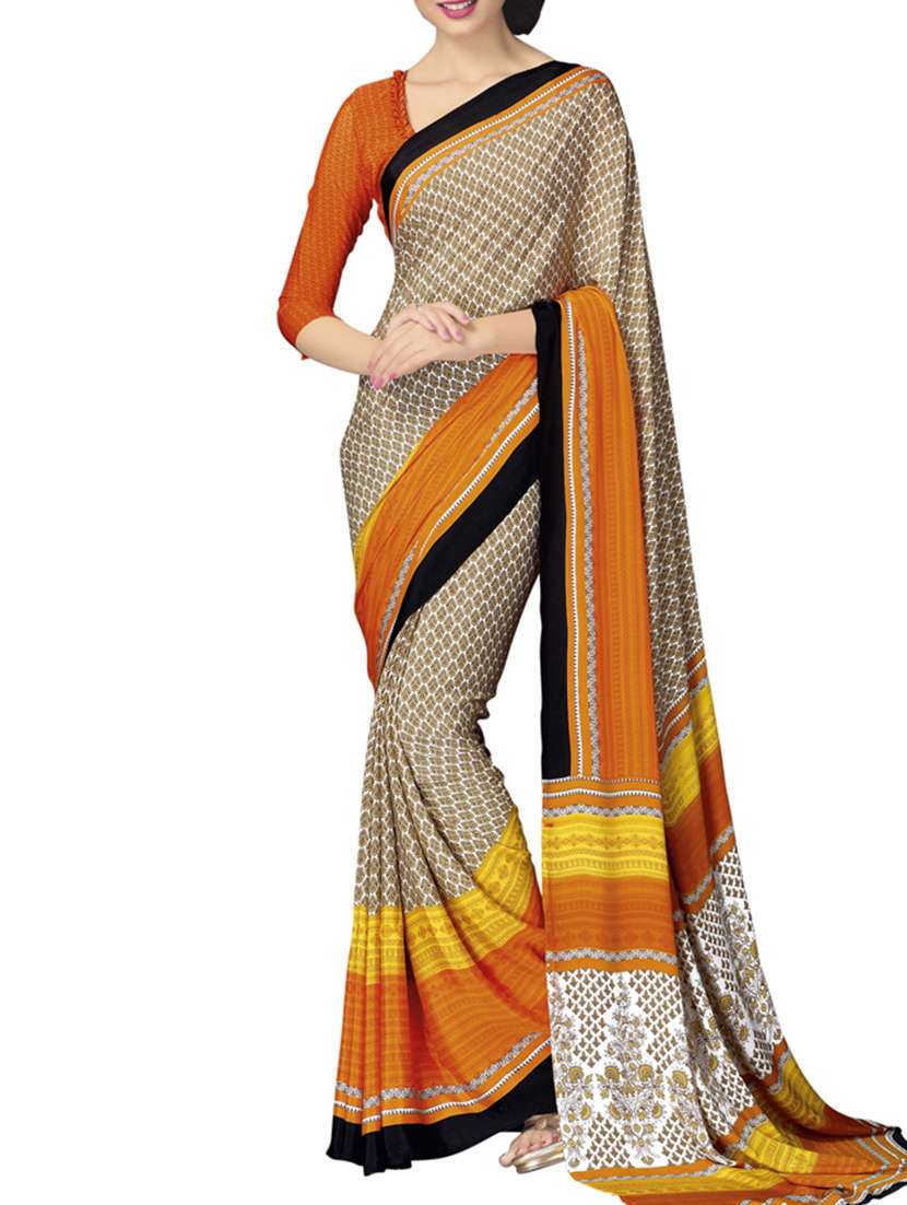 beige multi printed crepe silk saree - 9728034 - Very Small Image - 1
