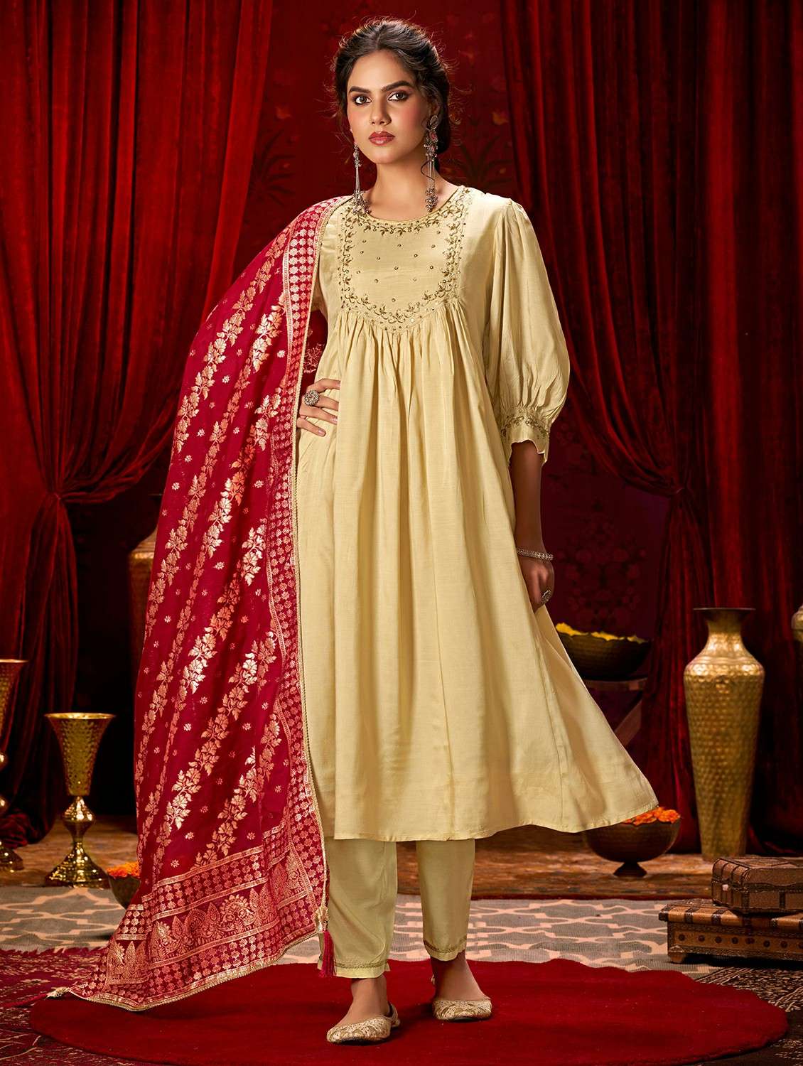 - Find gorgeous sets of ethnic wears in trending designs in beige colors suitable for festive wear of occasions.
