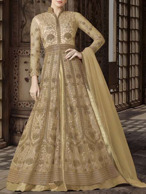 embroidered semi-stitched anarkali suits - 15131704 - Very Small Image - 1