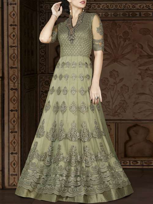 embroidered semi-stitched anarkali suit - 14898255 - Very Small Image - 1