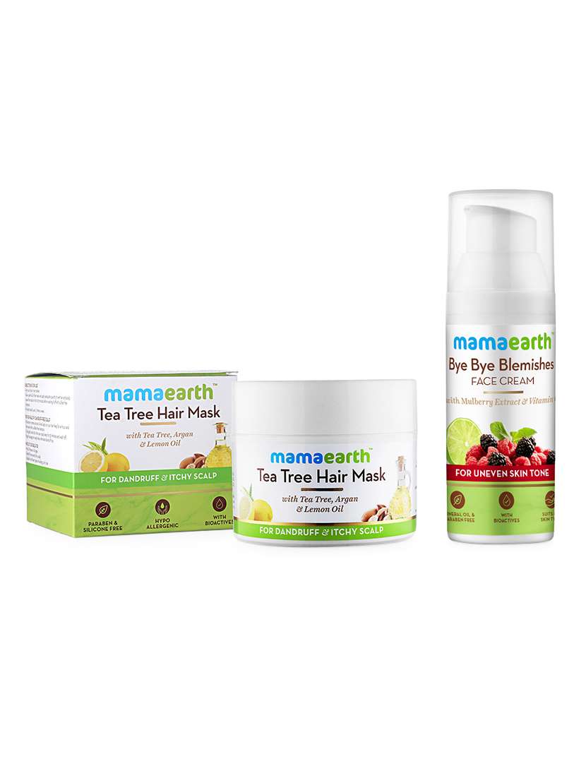 anti dandruff tea tree hair mask with tea tree and lemon oil, 200ml and bye bye blemishes 50 ml