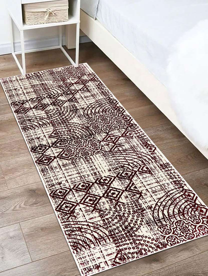 modefe 2x6 feet runner rug carpet red & ivory geometric printed primium persian carpets for bedroom