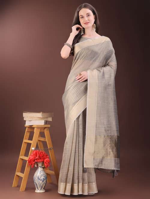 women checkered bordered saree with blouse - 21969906 - Very Small Image - 1
