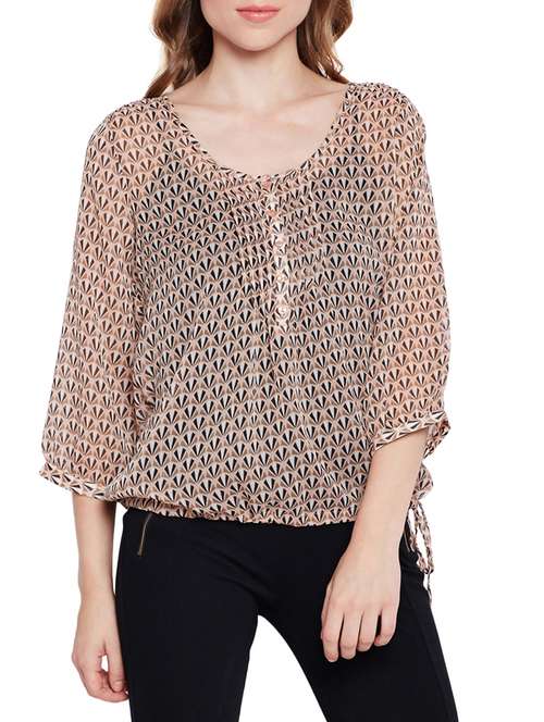 - » drawstring hem sheer blouson top