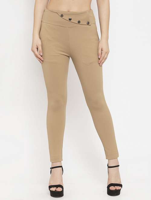 beige poly spandex jeggings