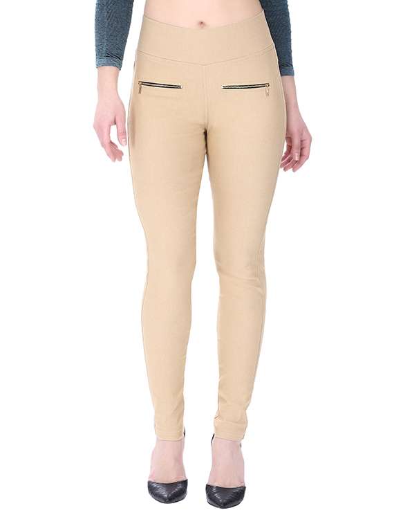 beige polyester jeggings
