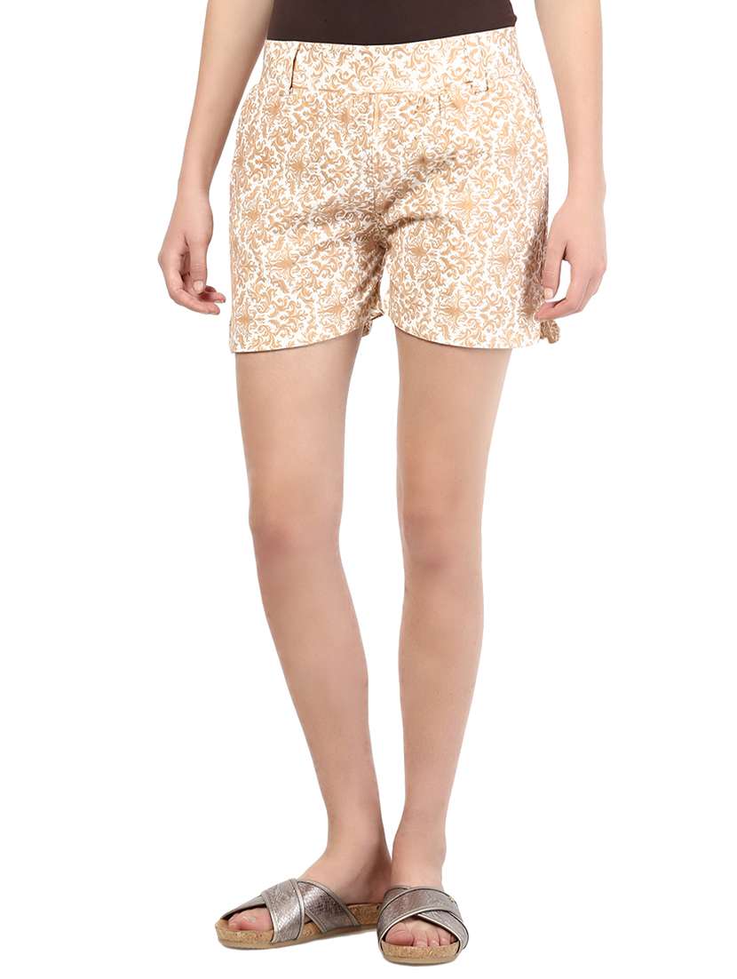 beige polyester regular shorts