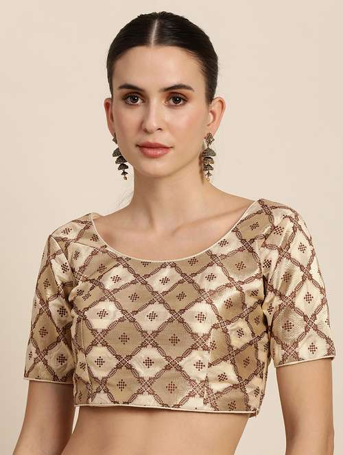 beige raw silk brocade blouse