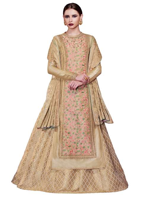 embroidered flared semi-stitched suit