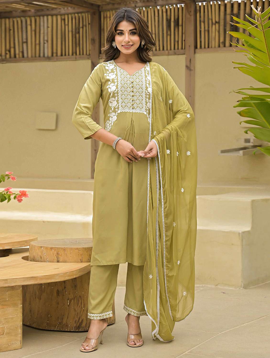 - Find gorgeous sets of ethnic wears in trending designs in olive colors suitable for festive wear of occasions.
