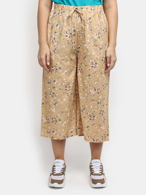 - » beige floral printed culottes