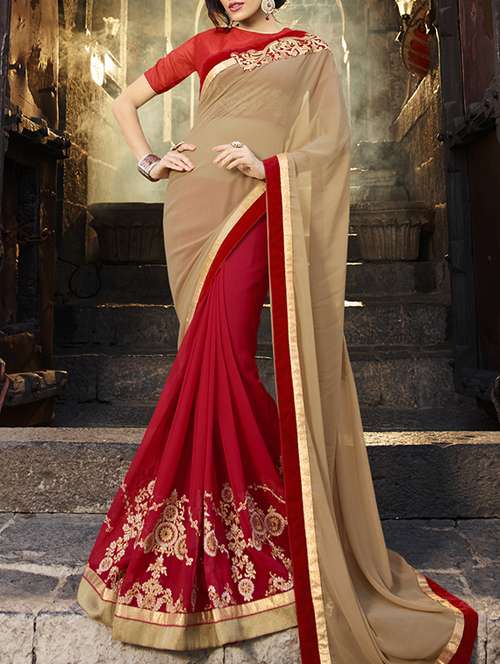 - » beige , red georgette saree